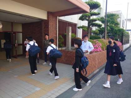 朝日が目にまぶしい朝。今日も暑くなりそうです。今日・明日と尿検査を実施します。今朝容器の提出を忘れた人は、明日も受け付けていますので持ってきてくださいね。