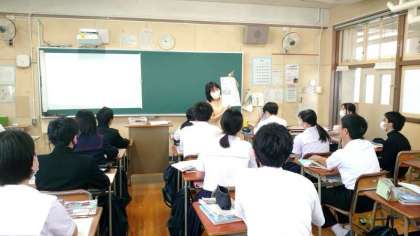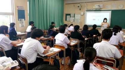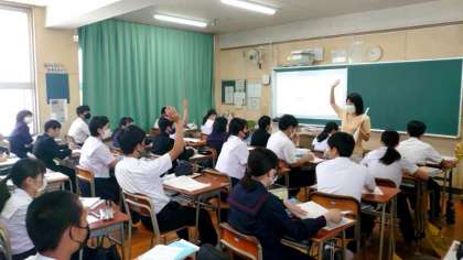 3年生社会科の授業で先生が新聞記事を紹介中。今週末から広島で開催されるG7サミット。先生がサミット参加国を質問すると、次々に手が挙がります。サミット閉幕直後の来週水曜日から3年生の皆さんが広島に修学旅行に出発です。サミットの余韻を味わえるかもしれませんね。