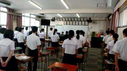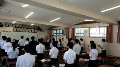 3年生音楽の授業で、滝廉太郎の「花」を歌います。「春のうららの隅田川〜」で始まる歌は、東京都墨田区の区民の愛唱歌になっているそう。授業では皆さんが手拍子でメロディーの強弱を表現しています。実際に歌う時の参考になるようですよ。
