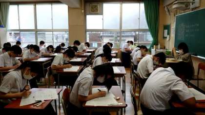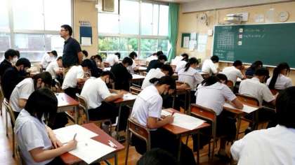 英語のテストが始まりました。3年生の教室では皆さんが問題を解き進めています。英文の書き換え(受動態や疑問文)や対話文など、さまざまな力を測る問題が出題されています。3年生になると難易度が上がりますね。