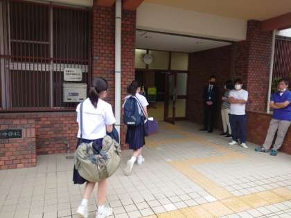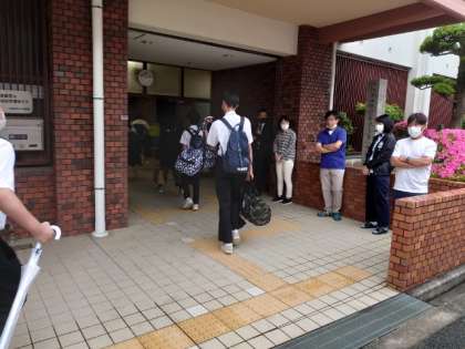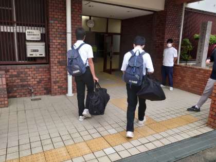 昨夕の雨がわずかに残る朝。今日も皆さん元気に登校してきました。明日から修学旅行。新大阪駅1階が集合場所です。しおりに地図が載っているので確かめてくださいね。