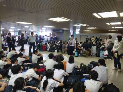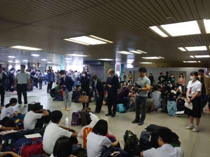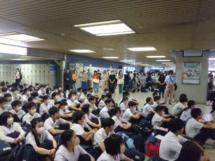 修学旅行の出発式が始まりました。3日間お世話になる旅行会社、写真屋さんの紹介がありました。3日間、よろしくお願いいたします!