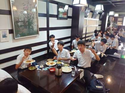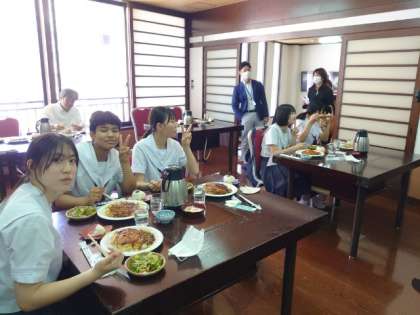 「むさし」のお店の方が広島弁を紹介してくださいます。「ほいじゃあね」は女子のお別れのあいさつとのこと。みんなで一緒に言ってみましょう。