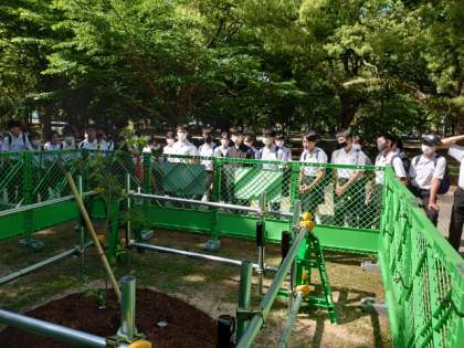G7サミットで各国の首脳が植えたソメイヨシノ。7本植樹するよりも7ヵ国の結束を示すため、1本植えることにしたそうです。