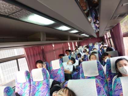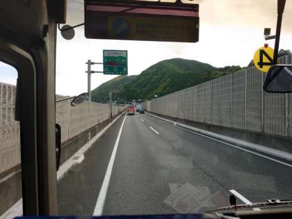 広島市内から一路山口県岩国市をめざします。車内では皆さんお休みモード。