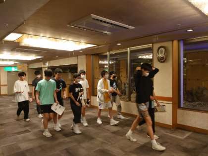 レクリエーション会場からそれぞれお部屋に戻ります。楽しかった1日目。今夜はぐっすり休んで、明日の自然体験に備えましょう。