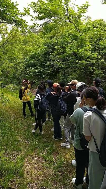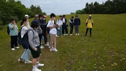 自然体験の湿原散策チームです。インストラクターの方が自然の特色を説明してくださいます。