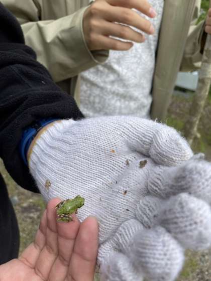 散策中、いろいろな生物に出会いました。インストラクターの方が名前や特徴を教えてくださいます。生きた理科の学習ですね。