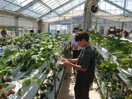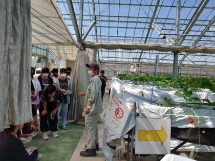 各自にプラパックと練乳ポーションが配られ、ビニールハウスに入ります。