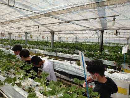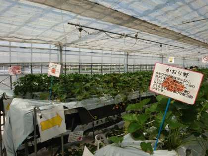 イチゴの品種がいろいろと栽培されている模様。品種によって味が違いますね。