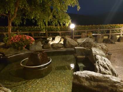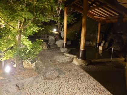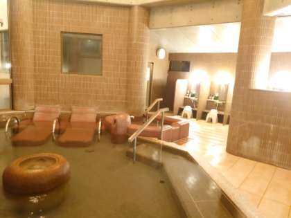 皆さんが入浴するホテルの温泉。大きなお風呂(内風呂1つ、露天2つ)にサウナもあるそうです。