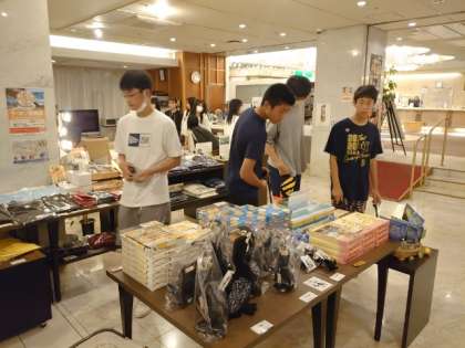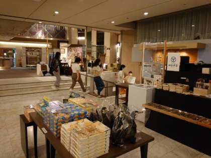 昨日、平和記念資料館の混雑によりホテル到着が遅くなった1、2組の皆さんがホテルの売店でお土産を探しています。皆さん、お土産購入を楽しんでください。
