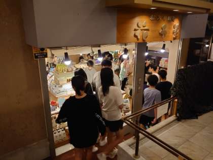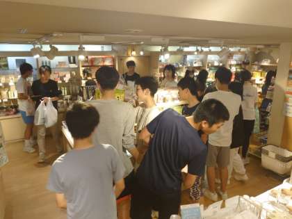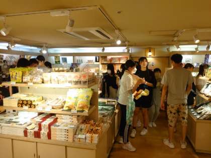 お風呂上がりのサッパリした表情で売店にやってきました。ご当地キャラのアクセサリーに歓声が上がります。お財布と相談しながら、お値打ちのお土産を見つけましょう。