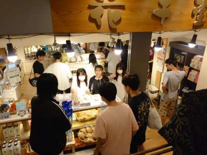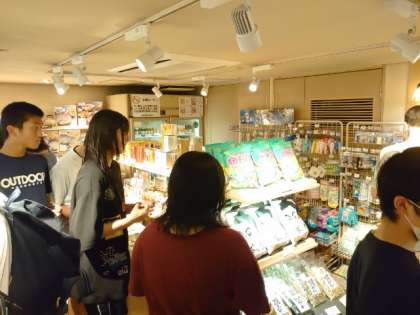 旅の思い出に友だちと一緒のお土産を購入する人、お家の方々が喜びそうなお土産に悩む人などさまざまな模様。クラスメイトと過ごす修学旅行最後の夜を満喫しています。
