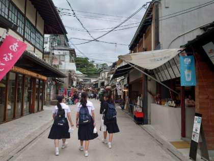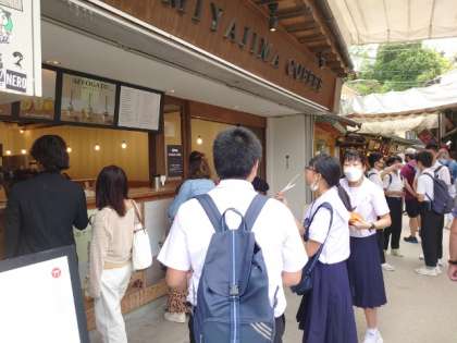 あなごめし屋さんの前で何やら思案中のグループもいるようです。お昼ごはんの相談でしょうか。