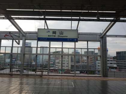 列車は岡山駅に到着しました。大阪まであと1時間です。