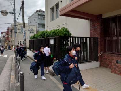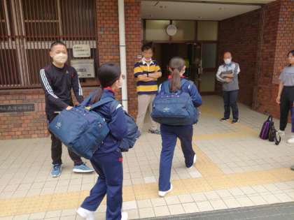 雲が広がるものの、穏やかな朝を迎えました。今日から1年生が一泊移住に向かいます。皆さん体操服に身を包み、元気に登校してきました。集合場所は体育館ですよ。教室と間違えないように!