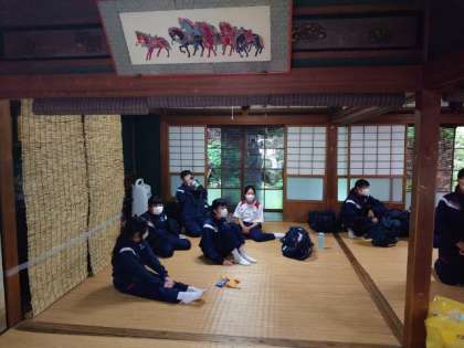 女子の皆さんも休憩中。この後、洞川を班毎に巡ります。