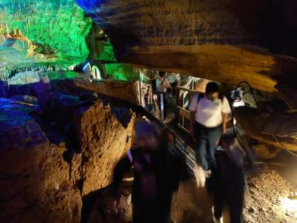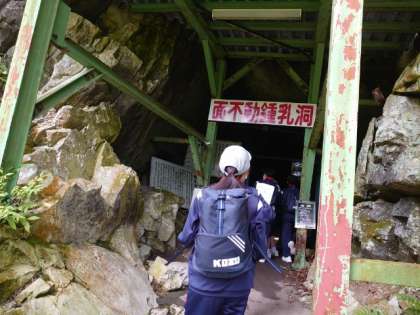 鍾乳洞に入ります。ひんやりした空気が漂っています。