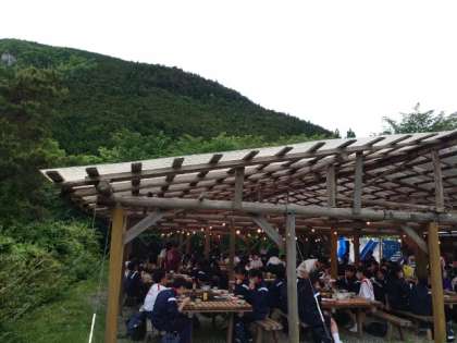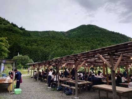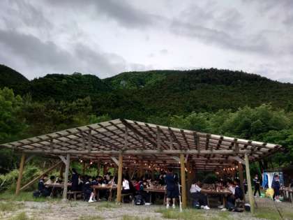 楽しい夕食の時間。天気は曇り空ですが、雨が降る気配は無さそうです。