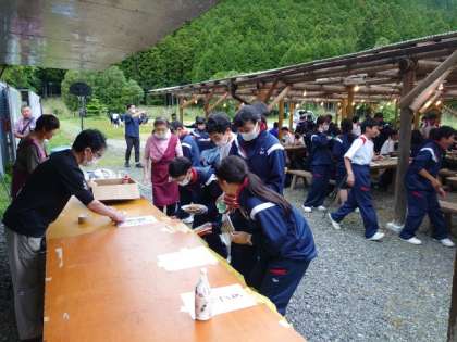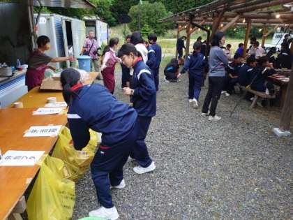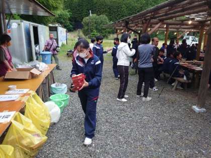食事が終わり、みんなでお片付け。美味しかったですか?桝源旅館の皆様、ごちそうさまでした!