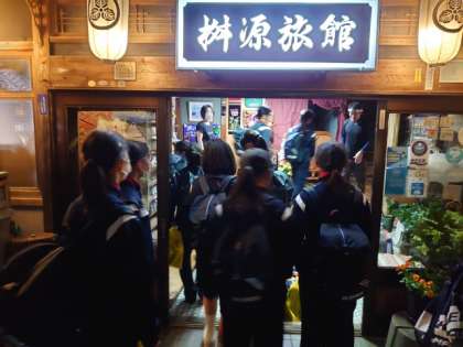 お宿に入ったら、グループ毎に健康観察を行います。