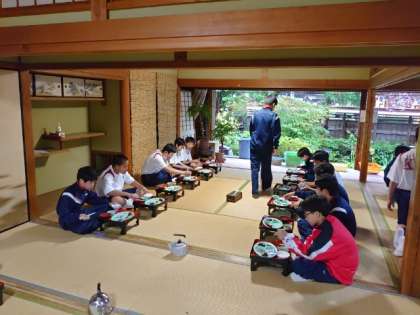 男子の皆さんがごはんのお代わりに並びます。おなかと相談しながら、いっぱいいただきましょう。