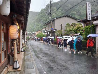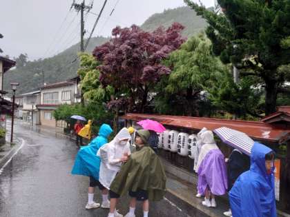 旅館から体育館まで7〜8分程度。降りしきる雨がうらめしいです。