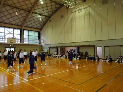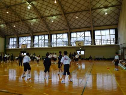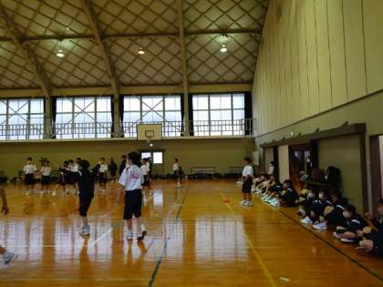 男子の試合を観覧している女子の声援が、雰囲気を盛り上げます。どのクラスも頑張って!