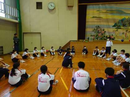 午前の活動が終わりました。各クラスに分かれて活動の振り返りを行います。頑張った点や課題を出し合います。