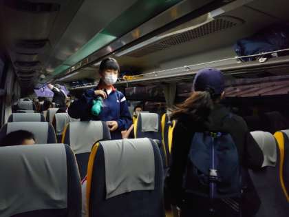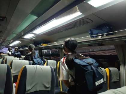 最終のバスに乗車完了です。これから学校に戻ります。