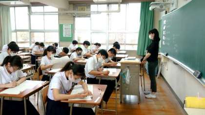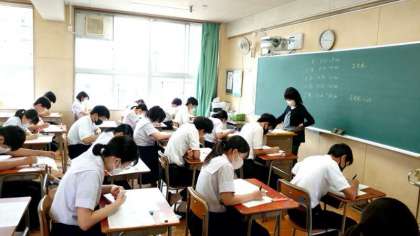 テスト1時間目がスタートしました。皆さん英語の問題を解き進めます。長文や英作文、会話などさまざまな問題が出ている模様。デキるところから着実に解いていきましょう。