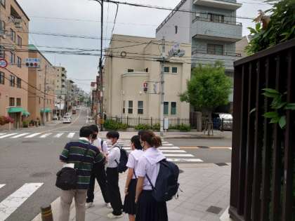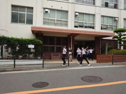 2年生の皆さんが次々に学校を出発します。