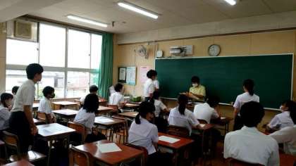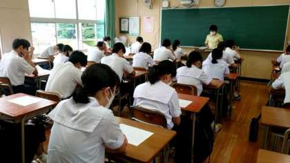 3年生英語の授業で昨日実施した実力テストが返ってきました。先生から1人ずつ解答用紙が手渡されます。チラッと点数を見て「ヤバい」との声が。再来週の期末テストで挽回しましょう。