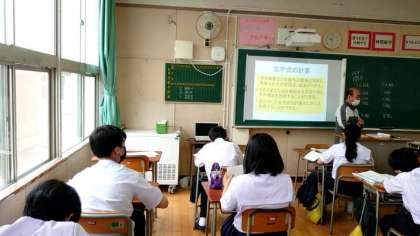 1年生数学の授業で「文字と式」の文章題を考えます。3人班がxグループ、5人班がyグループある場合、全体の人数を文字式で表してみます。式の作り方の基礎を学んでいます。今後もどんどん出てくるので式の作り方をマスターしてくださいね。