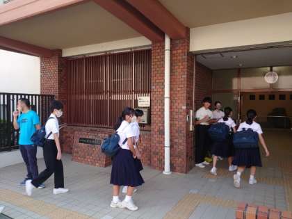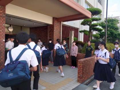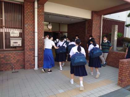 久しぶりに青空が広がる朝。皆さん元気に登校してきました。今日は先生方の会議のため45分授業の校時。下校が少し早めの15時30分頃になります。帰ったらテスト勉強を頑張りましょう。