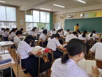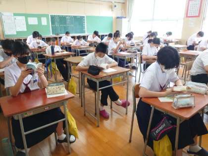 1時間目の授業開始前の各教室で読書活動が行われています。2年生の皆さんも好みの本を持ち寄り、しばし読書を楽しみます。落ち着いた雰囲気で1日をスタートできるのが良いですね。今日も充実した1日を過ごしましょう。