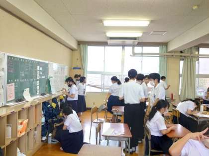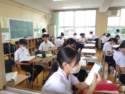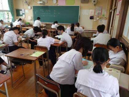 2年生の教室でも皆さんがテスト勉強中。問題を出しあったり、参考書を読みふけったり、それぞれのスタイルで開始前を過ごしています。まずは初日のテストを無事に乗り切りましょう!