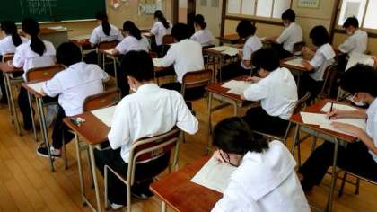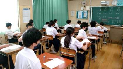 本日のテストの最後は技術家庭科。1年生の皆さんには初めての4教科(音・美・保体・技家)のテストです。現在、監督の先生が問題を配っています。技術と家庭科の問題が別々なので、解答用紙も2種類ありますよ。名前の記入漏れが無いように気をつけましょう。