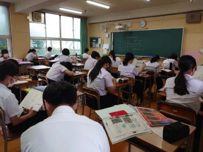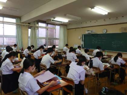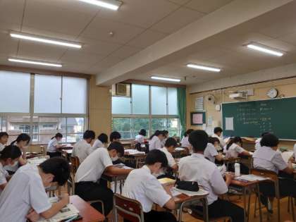 2年生の皆さんもプリントやノートに見入っています。教室内に集中している雰囲気が漂っています。まもなくテスト開始。良い緊張感でテストに臨みましょう。