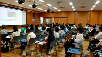 天王寺・夕陽丘・高津の3中学校PTA主催「公立高校説明会」が開催されています。天王寺区内の公立高校をはじめ、6校の先生方からお話を伺います。会場は保護者の方々で満席です。