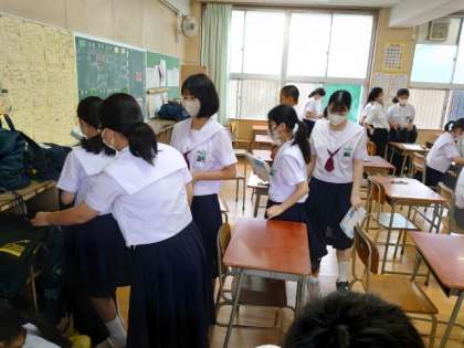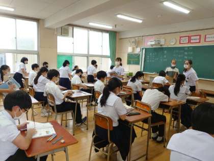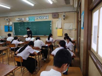 1年生の教室に監督の先生が来られました。そろそろ問題が配られます。荷物を片付けて、テストを受ける体制を整えます。3日目ともなると集中力をどう維持するかが大切です。みんなで協力してクラスの雰囲気を良い方向に向けましょう。