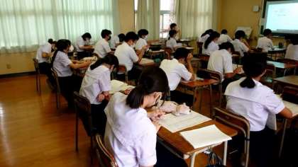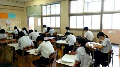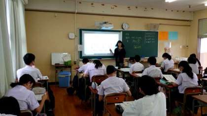 2年生理科の授業も先週のテストが返されています。テスト問題がスクリーンに映され、先生がポイントを解説してくださいます。皆さん問題の要点を聞き逃さないでくださいね。