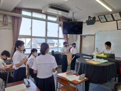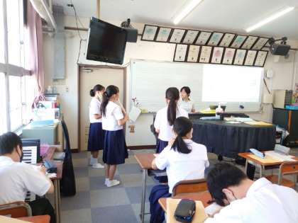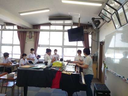 1年生音楽の授業でアルトリコーダーのテストを行っています。課題曲はベートーベンの「よろこびの歌」。有名な楽曲なのでメロディーは大丈夫。あとは上手く吹けるかどうか。先生の前で吹くのは緊張しますよね。