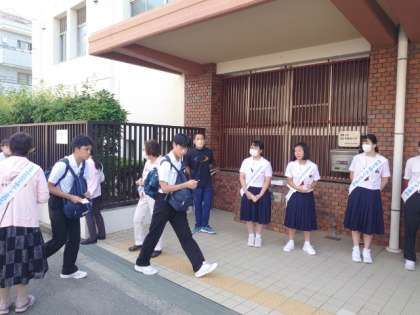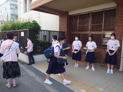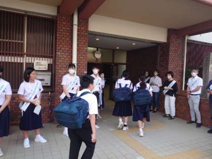 7月に入りました。今月は「社会を明るくする運動」の強調月間。今朝は地域の保護司さんや協助員さんらが来校し、朝のあいさつ運動に参加してくださいました。