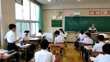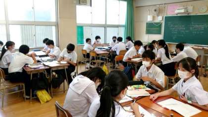 1年生数学科で式の関係を学習中。今日は「 1500−a > 2(500−b )」の不等式を文章でどう表現するかをグループで考えます。グループになるといろんなアイデアが交わされるので、新たな発想が生まれますね。