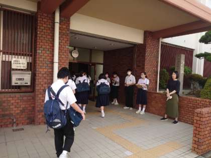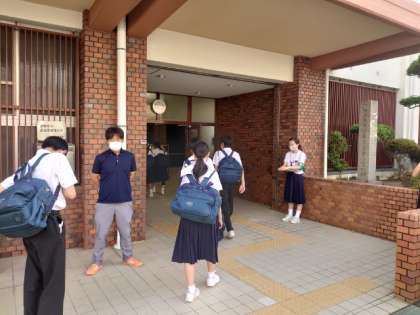 昨夜の雨が上がり、夏の陽射しが差し込む朝。遠くからセミの鳴き声が届く中、皆さん登校してきました。今日から全学年対象に校長面接が始まります。まずは3年生から。わずかな時間ですが、よろしくお願いします。