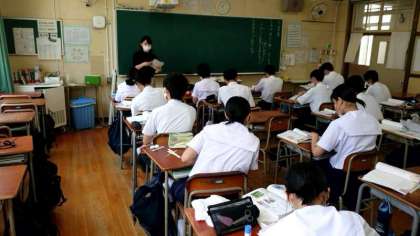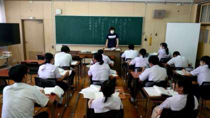 2年生数学科に続いて、3年生国語科も少人数授業を行っています。クラスを分割して、万葉集や古今和歌集などの日本の古典を習います。わからない点は先生に質問してくださいね。