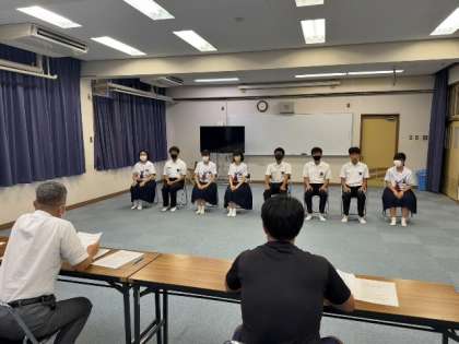 3年生の皆さんと面接練習を行いました。中学校生活や夏休みの過ごし方等、さまざまな質問にハキハキと回答できていましたね。姿勢も乱れることなく、とても立派でしたね。