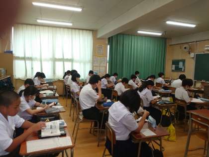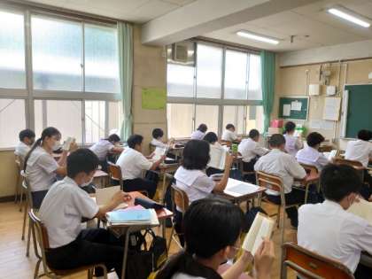 授業開始前の1年生教室では朝の読書活動が行われています。オルゴールの柔らかな音色が流れる中、皆さん静かに読書を楽しみます。映画の原作を読み進めている人もいる模様。来週も好きな本を持ってきてくださいね。